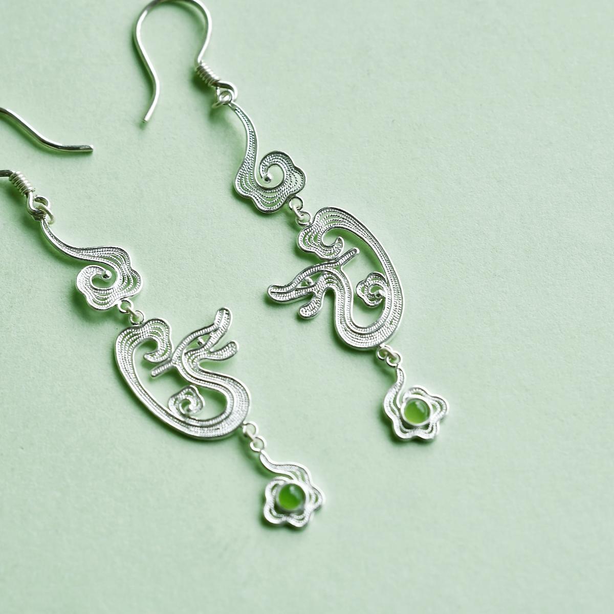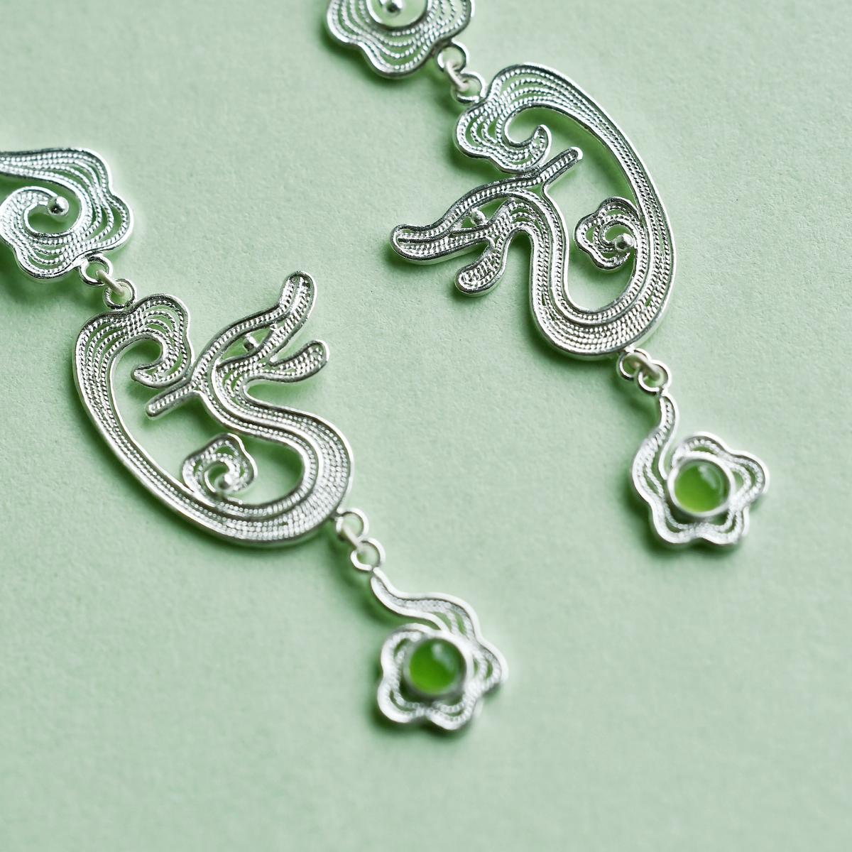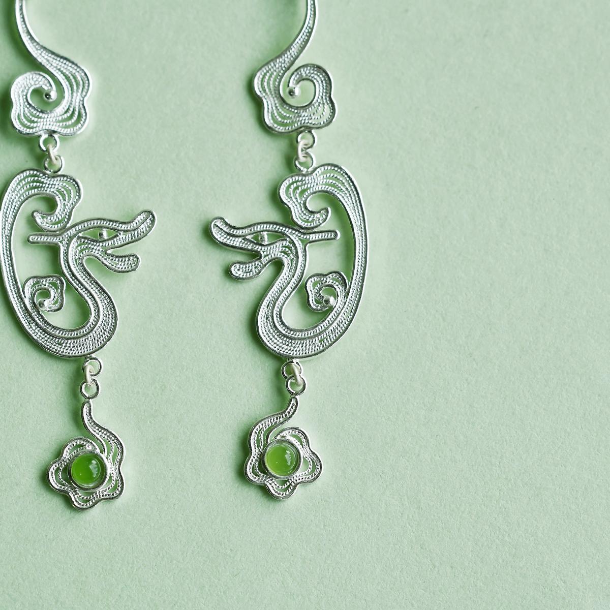 Materials: silver: Pure .990 Silver, Hetian green nephrite; Gold Plated: Pure .990 Silver, 24k gold, red agate.