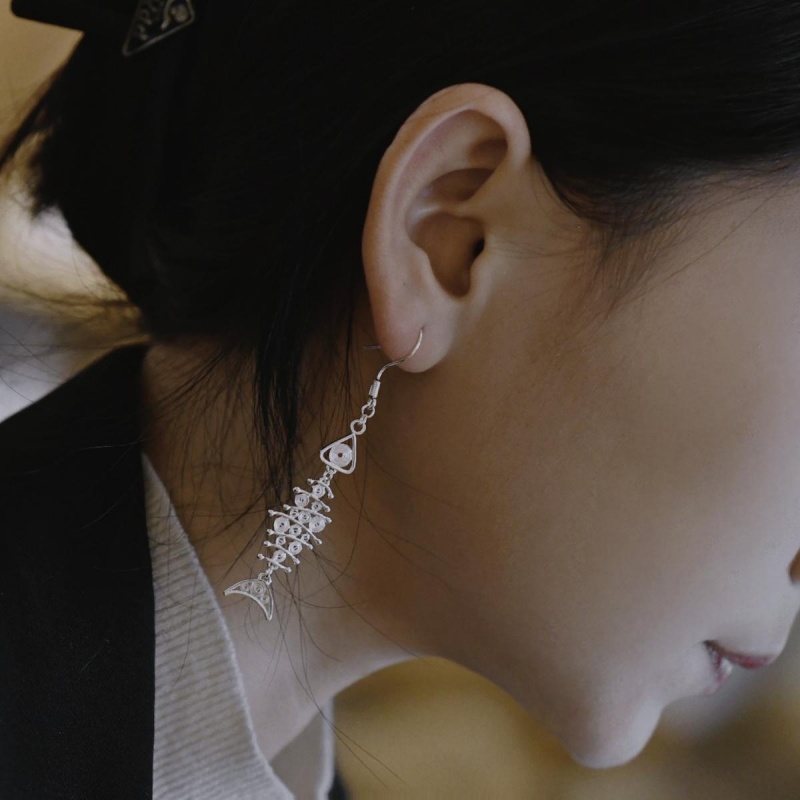 Nombre: Pure Silver Earrings – Longing for the Fish