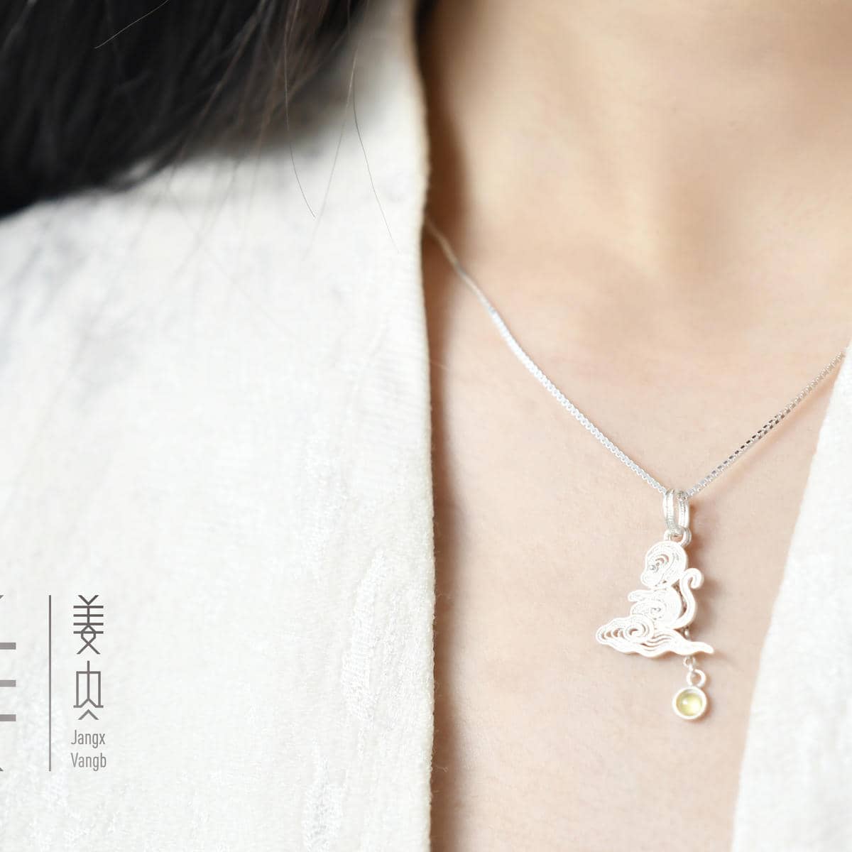 A Pure Silver Pendant – A Steed Galloping on Auspicious Clouds
