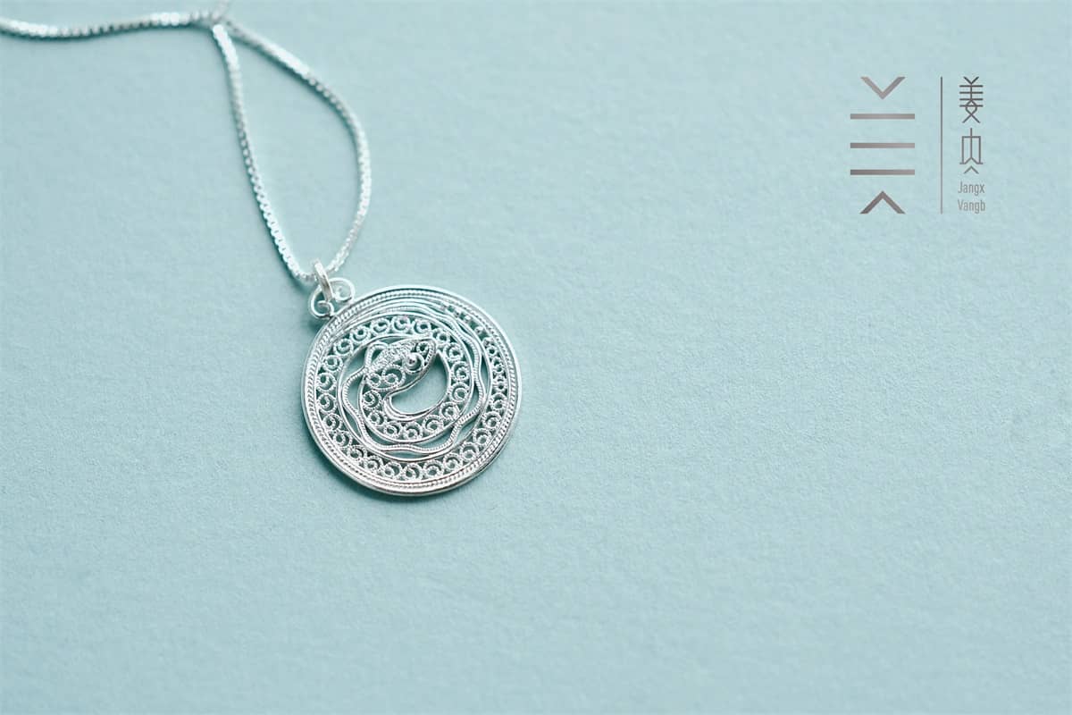 This piece is an original work from the Jiang Yang brand’s “Spiritual Snake” series, titled “Wealth Abundance.” The design is inspired by the “Auspicious Peace Drum” patterns of the Miao people’s culture, featuring motifs of “mountains and rivers,” beautifully crafted with intricate filigree work. The snake’s body is agile and tightly coiled, symbolizing the ownership of all things.