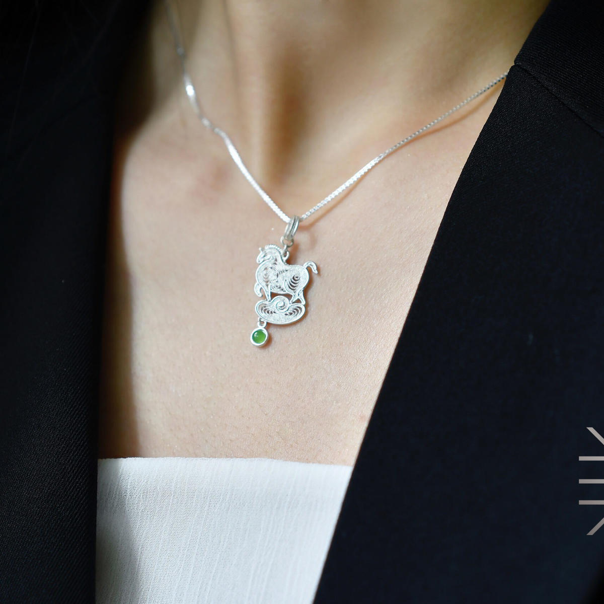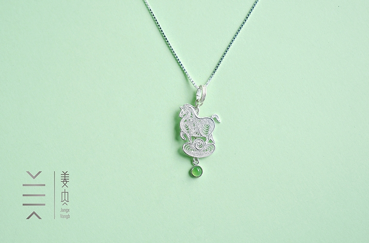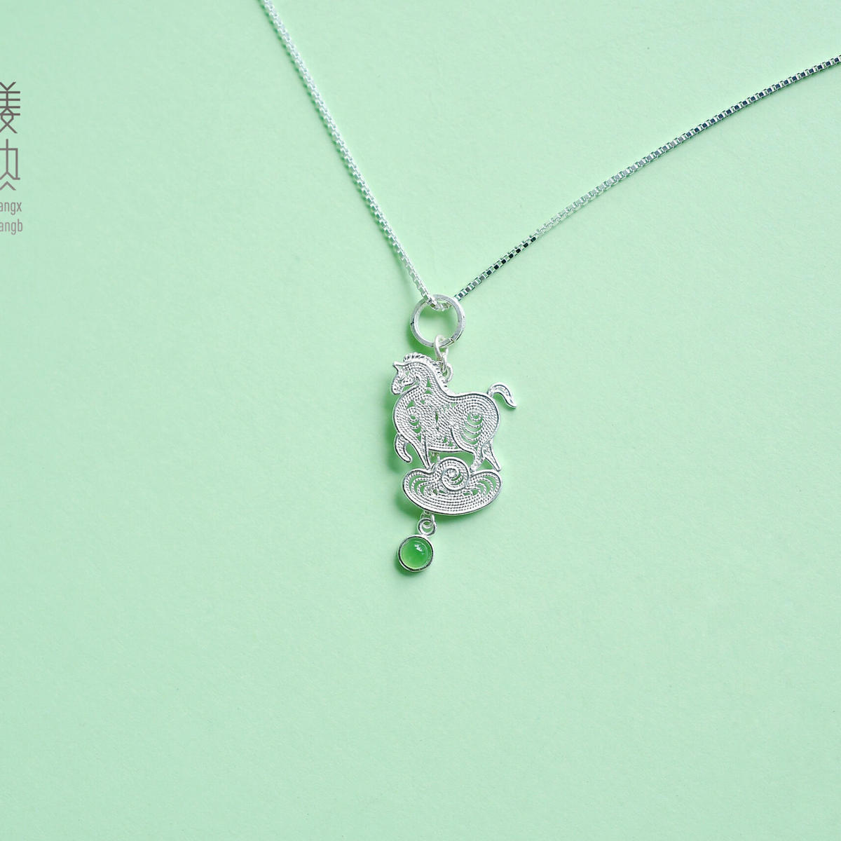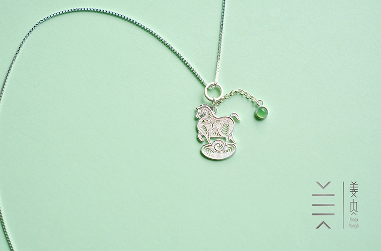 A Pure Silver Pendant – A Steed Galloping on Auspicious Clouds