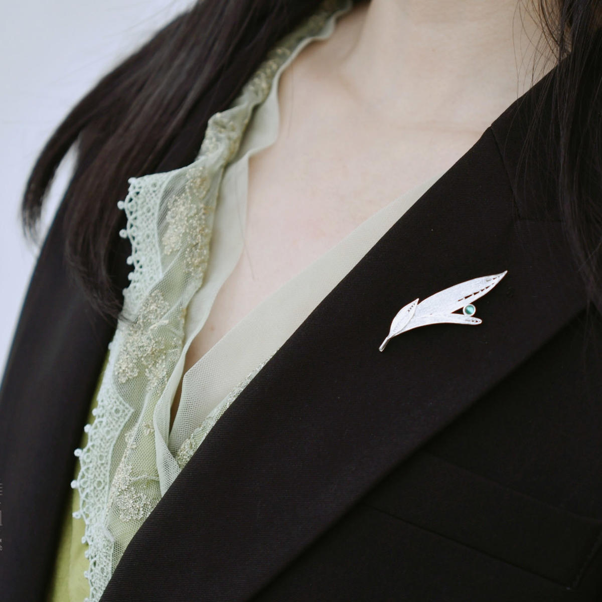 Name: Pure Silver Brooches & Pins – Tea Leaves Purifying the Mind